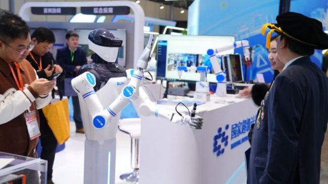 “这款机器人深度融合开源AI大模型,从机械结构、电机驱动到运动控制算法均实现全面开放。”比邻星科技现场负责人介绍。该机械臂配备多种扩展接口,可灵活接入视觉、语音等传感器,轻松适配科研实训、工业装配等多元场景,为不同行业的智能化升级提供高度灵活的解决方案。