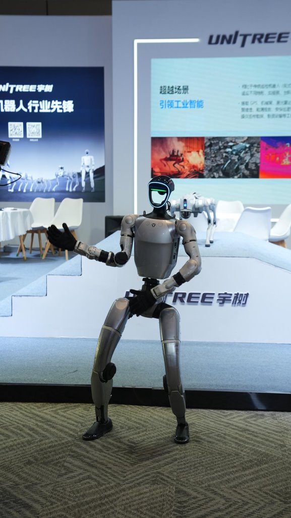 这边“超人乐队”演出正酣,展厅内宇树科技的机器人也赶来“互动”:四足机器人现场展示倒立行走的 “硬核技能”,人形机器人则丝滑起舞,还亮出一套行云流水的中国功夫,动作灵活、姿态稳定,刷新了观众对机器人运动能力的认知。