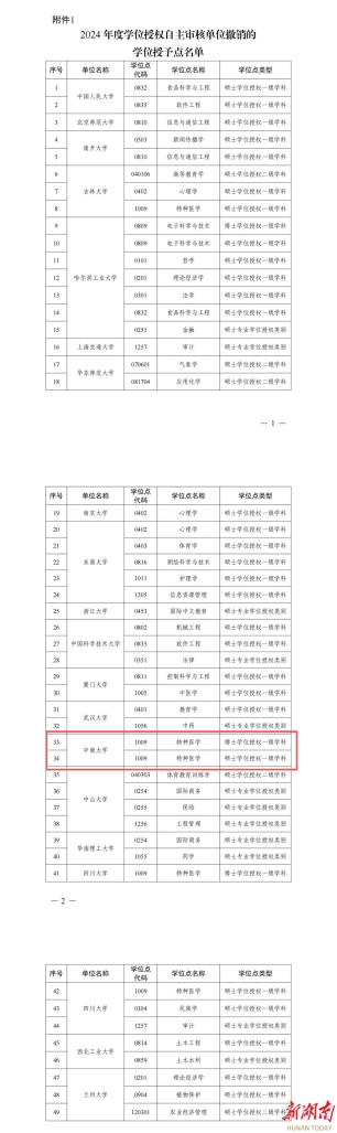此次2024年自主审核撤销名单显示,中南大学主动撤销“特种医学”(博士、硕士学位授权一级学科)。
