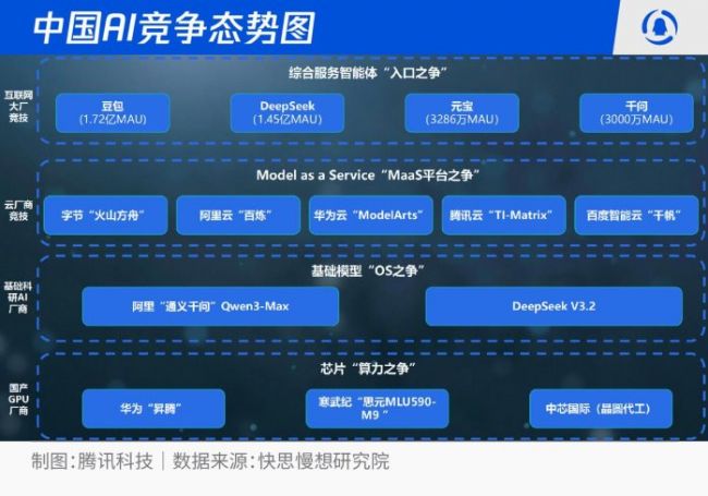 中国市场上人工智能研发型创企与互联网巨头的竞争,围绕“入口-MaaS-基础模型-算力”四大战役展开:
