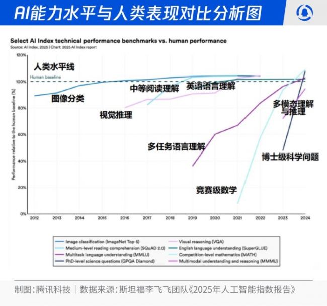 斯坦福李飞飞教授研究团队也在《2025年人工智能指数报告》中获得相关结论,2025年,AI大模型在博士水平科学问题分析、竞赛级数学、多任务语言理解超越人类水平,而早在2024年大模型就已经在图像分类、中等阅读理解、英语语言理解、视觉推理领域超越人类。所以,我们与其焦虑为什么追赶不上AI智商发展,不如思考如何在工作、生活场景中用好比自己更聪明的AI好帮手。
