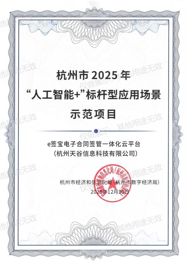 作为杭州本土企业,e签宝既是城市AI战略的受益者,也是共建者。未来将继续深耕合同管理与数字信任领域,以更智能的产品和更开放的生态,为杭州人工智能创新发展第一城建设提供支撑。