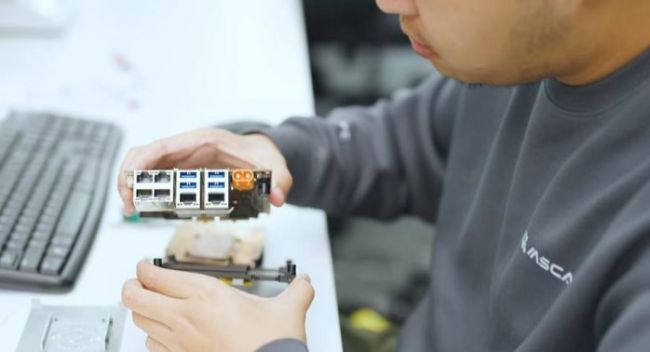 灵境智源研发人员在做N204小脑产品组装测试。