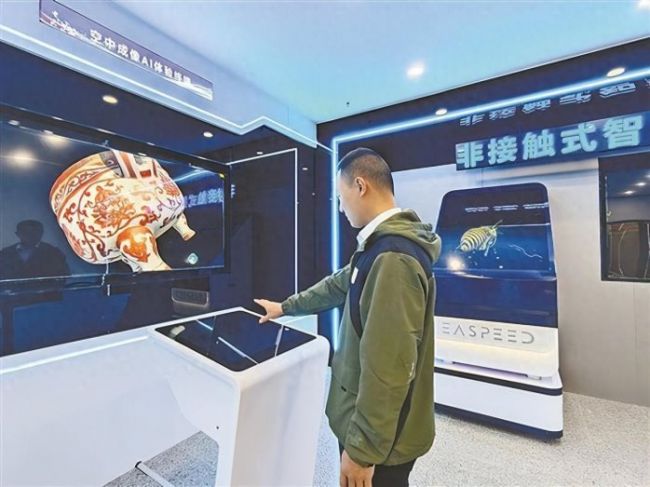 东超科技的“无介质空中悬浮成像”技术可应用于数字文旅等领域。(本报记者 林露虹 摄)