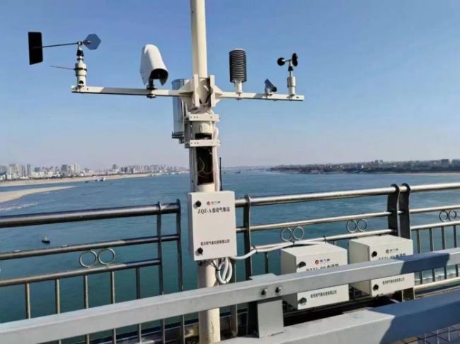 图为建在荆州长江大桥上的自动气象站 供图:湖北省气象局
