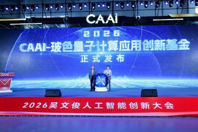 马占宇副秘书长、玻色量子副总裁巨江伟发布“2026 CAAI-玻色量子计算应用创新基金”