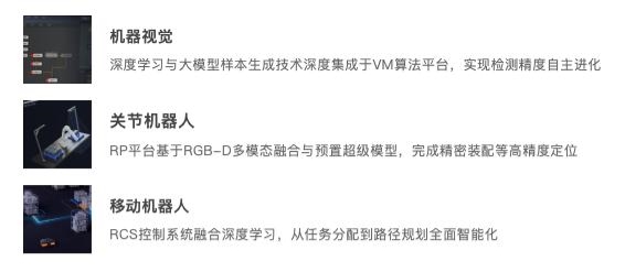 海康机器人以“智慧融合,眼脚手协同”为核心战略,将前沿AI技术系统性地融入产品创新,机器视觉(眼)、移动机器人(脚)、关节机器人(手)三大产品线均已完成AI原生级融合: