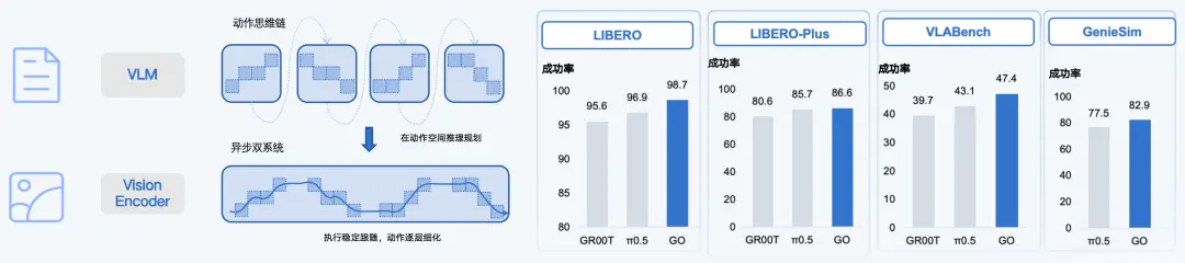 GO-2 围绕这一问题构建了一套完整架构:先通过动作思维链完成高层动作推理,再通过异步双系统稳定执行。