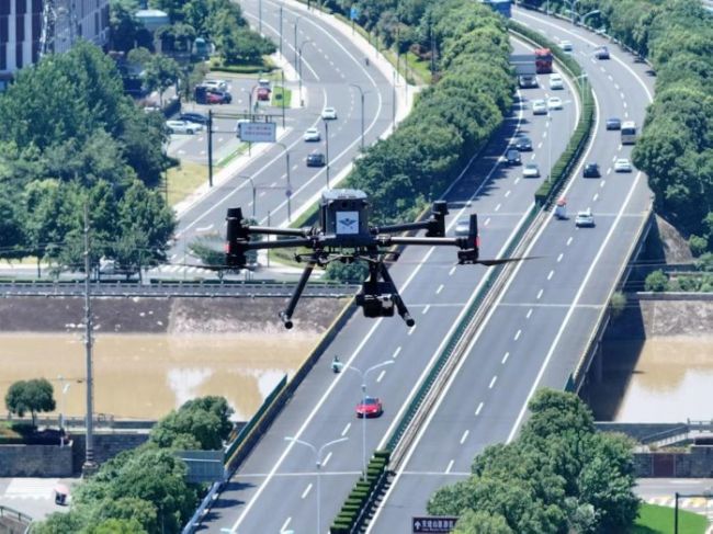 “交管智翼”更是把无人机用到了事故处理上。今年1月7日,沃州镇西山村发生两车相撞事故。接警后,无人机5分钟抵达现场,空中喊话引导驾驶员做好防护,多角度拍照取证,从勘查到疏导交通再到清撤现场,整个流程比传统模式缩短了40%。