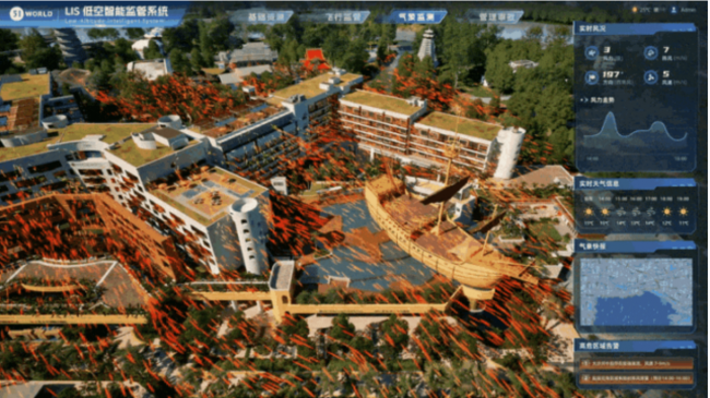 针对低空气象复杂多变、传统监测手段不足的痛点,系统支持多源低空气象数据接入,可对风速、风向、能见度、降水、雷暴等关键气象指标进行实时监测与精细化预报。依托强大的空间智能能力,系统可对区域微观气象进行实时仿真推演,精准研判气象风险等级、评估飞行适宜条件、发出动态预警,为飞行计划制定、航线优化调整、起降决策部署提供科学可靠的依据,有效降低复杂气象条件对低空飞行的不利影响,保障飞行安全。