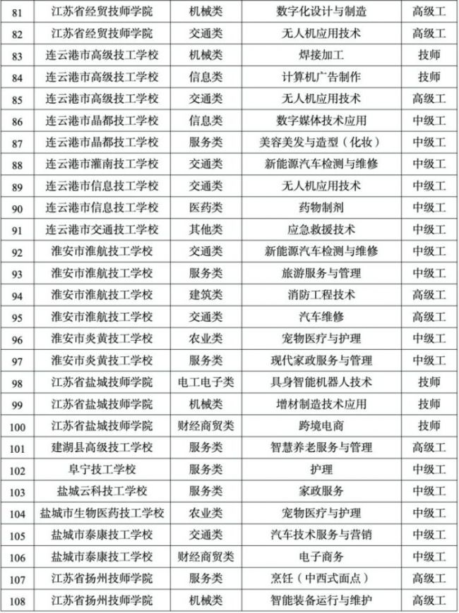新增的服务类和农业类专业更加贴近生活需求。多所院校新增“康复保健”“智慧养老服务与管理”“现代家政服务与管理”等专业,顺应了社会对健康照护、养老服务的现实需求;“宠物医疗与护理”出现在徐州、淮安、盐城、扬州、沭阳等多地技工院校的新增目录中,反映出“它经济”带动的就业新热点。