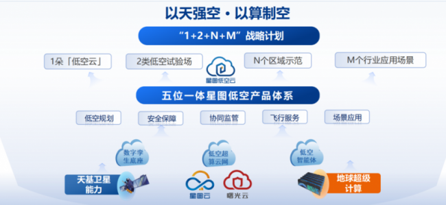 「核心要义是用卫星的能力来赋能低空,用计算的能力来管控低空。」邵宗有表示,中科星图提出「以天强空、以算制空」八字方针,构建「1+2+N+M」低空发展战略计划,低空规划、安全保障、协同监管、飞行服务、场景应用「五位一体」的星图低空产品体系则是这一战略落地的实施载体。