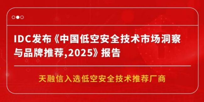 近日,IDC发布《中国低空安全技术市场洞察与品牌推荐,2025》报告。天融信凭借深厚的技术积累、全面的产品与服务能力,成功入选低空安全技术推荐厂商,充分体现了市场对天融信低空安全领域技术能力的高度认可。