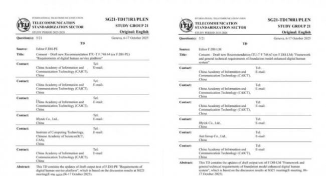 这一前沿技术展示的背后,离不开坚实的技术积淀与产业共识的支撑。就在不久前,国际电信联盟(ITU-T SG21)在瑞士日内瓦召开全体会议,由科大讯飞与中国信通院共同参与编辑的两项数字人国际标准——ITU-T F.748.63(基础模型增强的数字人系统框架及通用技术要求)与ITU-T F.748.64(数字人服务平台要求)——顺利通过结项,计划于2026年正式发布。这意味着,推动产业发展的技术实践,正在凝聚成全球公认的规范。