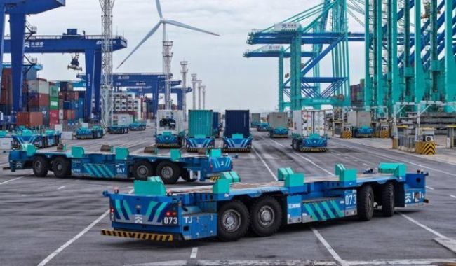 在中国的一个大型港口,自动驾驶卡车载着集装箱穿梭往来,现场几乎不见人员身影,港口的调度运营由人工智能掌控。