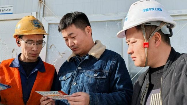 “上班之前想一想,安全防护不能忘”。近日,在中铁上海局潍宿高铁郯城制梁场制梁区域,现场工人学习着这样的安全顺口溜。这是该梁场为切实加强冬季现场施工安全给工人发放的安防“口袋书”中的内容。