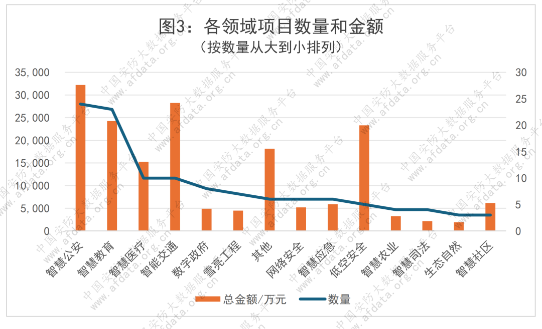 传统赛道稳中有进:智慧公安(24个项目3.22亿)、智慧教育(23个项目2.43亿)占据项目数量前两位,需求集中在数字化升级与标准化配置,合作确定性高。
