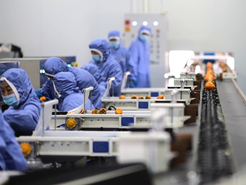 富平湾里村“柿子未来工厂”自动化分选车间