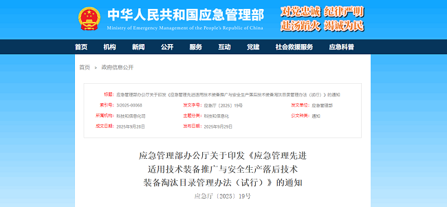 2025年,应急管理部办公厅发布了《关于征集2025年度应急管理先进适用技术装备推广与安全生产落后技术装备淘汰目录的通知》,旨在加快推广先进适用技术装备,淘汰严重危及生产安全的技术装备。