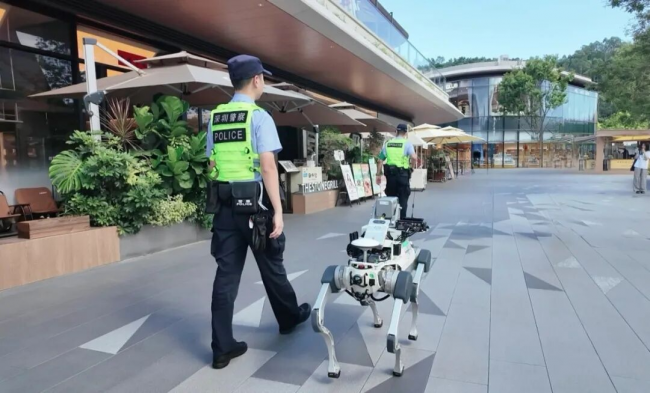 云深处科技绝影X30机器狗协同民警开展巡逻防控