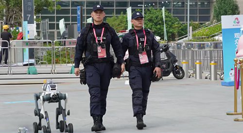 除核心比赛场馆外,云深处科技两款机器狗还将安防服务延伸至训练场地、街道、广场、停车场等配套区域。针对其巡逻空间分散、人力不足等痛点,两款机器狗实现了从“重点布防”到“全域覆盖”的升级。