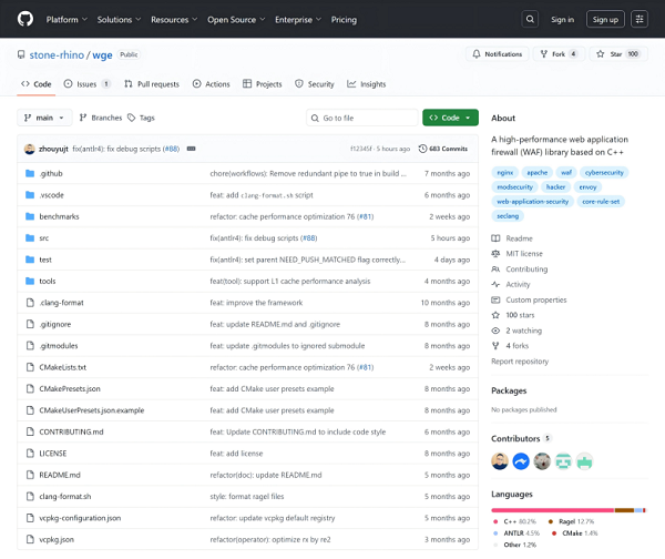 如今,这个问题有了一个更优解:石犀科技全新推出开源WAF——WGE(Web Governance Engine)引擎。该引擎基于C++23从零构建,旨在从根本上解决安全与性能的固有矛盾,即在不妥协防护能力的前提下,实现数倍于传统方案的性能突破,为现代高负载业务提供可靠的安全基建选择。