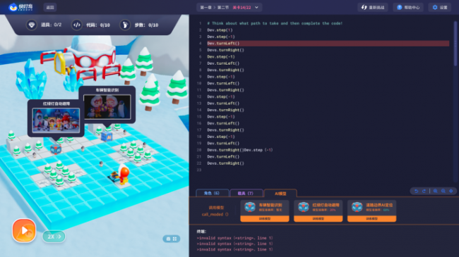 在帮助学生入门的同时,如何拓宽学习的广度与深度?快叮岛通过新增的“人工智能关卡”和“C++关卡”两大模块给出了答案。