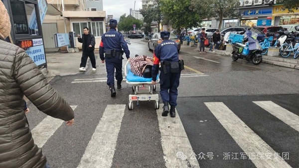 当日清晨,温州百里东路街头突发惊险瞬间:一名老年市民意外摔倒,意识模糊、情况危急,围观群众一时手足无措。千钧一发之际,正在周边执勤的军正保安人员挺身而出,上演最美“逆行”——他们沉着冷静地快速评估老人状况,在确认无骨折风险后,即刻启动集团标准化应急预案:一声呼叫,队友迅速携搬运平车赶到;默契配合,平稳托举、精准转移;争分夺秒,一路护送老人直达附近急诊中心。整套救援流程行云流水、规范专业,从发现险情到完成转移全程仅耗时3分钟!正是这“与死神赛跑”的3分钟,为老人赢得了黄金抢救时间,最终使其转危为安。面对前来致谢的家属,他们只是质朴回应:“这是我们该做的”,而家属含泪的那句“多亏你们训练有素,救了老人一命”,正是对军正“三度”匠心最真切的印证。