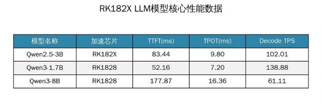 *不同参数量 LLM 模型在 RK182X 上的核心性能数据如下: