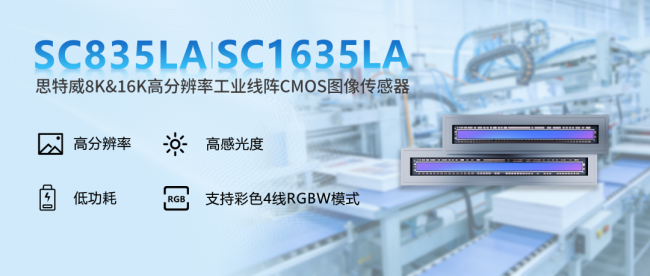 近日,技术先进的CMOS图像传感器供应商思特威(SmartSens,股票代码688213),全新推出8K和16K超高分辨率高速线阵CMOS图像传感器——SC835LA&SC1635LA。两款新品均基于思特威SmartClarity®-3技术平台打造,采用了先进的掩膜拼接工艺,具备高行频、高感度、低功耗、低噪声等多项性能优势。SC835LA和SC1635LA提供黑白与彩色双版本,能够灵活适配多种工业检测场景。凭借优异的图像质量与高传输速度,SC835LA和SC1635LA可充分满足工业场景下对超长连续物体进行高速检测的应用需求,为智能工业流水线的稳定运行提供高效可靠的视觉支持。