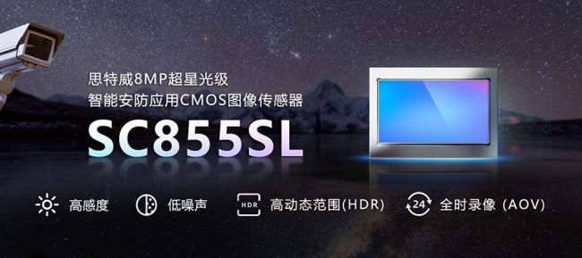 思特威(上海)电子科技股份有限公司(股票简称:思特威,股票代码:688213)近日宣布,全新推出800万像素4K高清Star Light(SL)超星光级智能安防应用图像传感器——SC855SL。作为1/1.8"靶面尺寸的背照式图像传感器,SC855SL基于思特威先进的SmartClarity®-3工艺技术打造,搭载SFCPixel®、PixGain HDR®等优势技术,具备高感度、低噪声、高动态范围等性能优势并支持全时录像(AOV),能够帮助AI黑光全彩摄像头实现在户外极暗或无光环境下无需补光的4K高清、色彩真实的全彩影像效果。