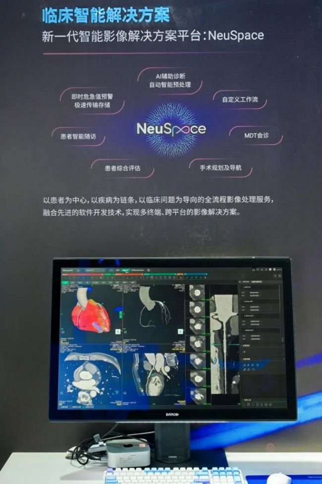 其中,新一代智能影像后处理平台NeuSpace以患者为中心、以疾病为链条,融合多模态影像分析智能体,覆盖从影像输出到报告生成的全流程,凭借智能识别、秒级分析、辅助诊断、自动生成报告的全链路能力,将医生从繁琐的重复性工作中适度解放,把人机协同的效能充分释放到病情研判、方案制定等更关键的诊疗节点。