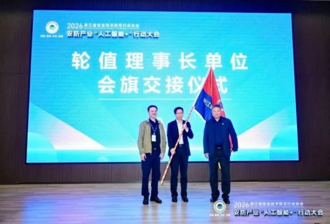 会上,浙江省安全技术防范行业协会第六届理事会第四任轮值理事长、迪普科技总裁邹禧典发表致辞并完成轮值理事长单位会旗交接。他表示,任期内将以身作则、勤勉履职,不负信任,呼吁在座嘉宾共促浙江安防事业高质量发展,并坚信“人心齐泰山移”,浙江安防产业发展之路将越走越宽。