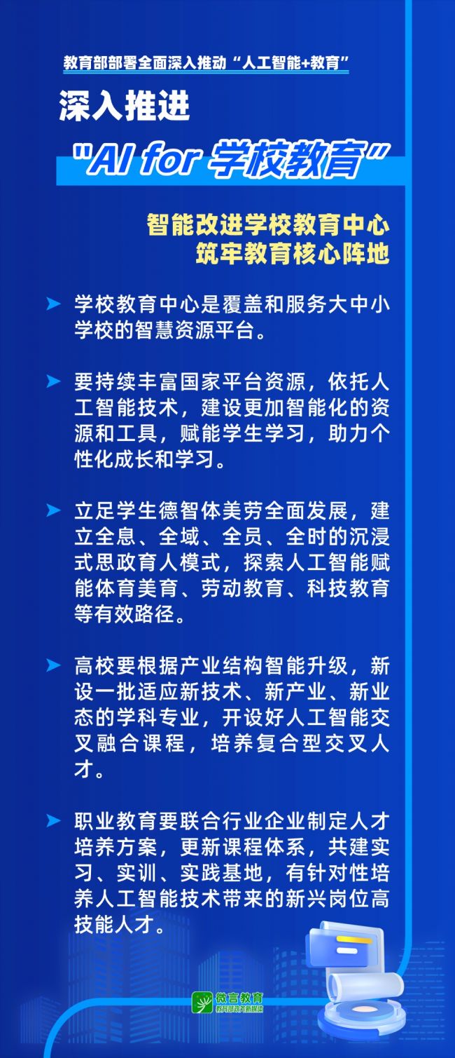 面向“十五五”,用好人工智能这一关键变量,以"人工智能+教育”为抓手,推动人工智能融入教育全要素、全过程、全场景,奋力开创国家教育数字化战略行动2.0新格局。