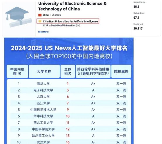 近日,记者从电子科技大学终身学习中心获悉,根据U.S. News世界大学排名发布的2025-2026全球人工智能最佳大学排名,电子科技大学上榜,排名全球第三。