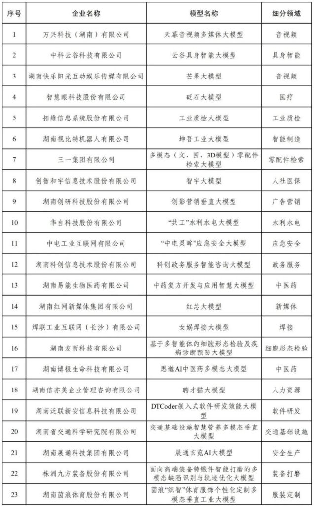2025年度湖南省人工智能大模型拟认定名单