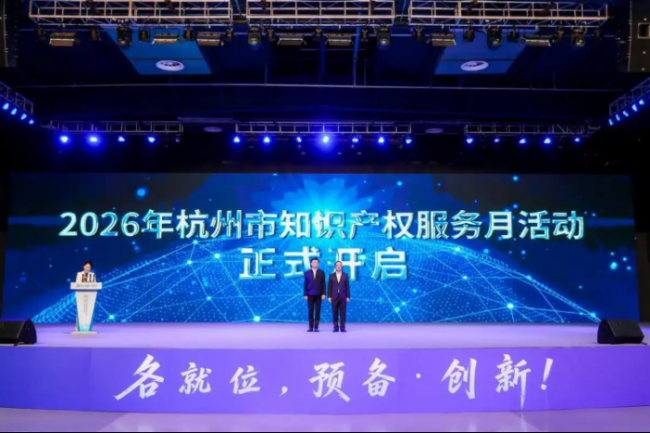 今天上午,以“各就位,预备:创新!”为主题的2026年杭州市知识产权宣传周主题活动在杭州萧山区国家人工智能应用中试基地举行。本次活动由杭州市市场监管局(市知识产权局)、杭州市中级人民法院、杭州市人民检察院、杭州市公安局、萧山区人民政府联合主办。